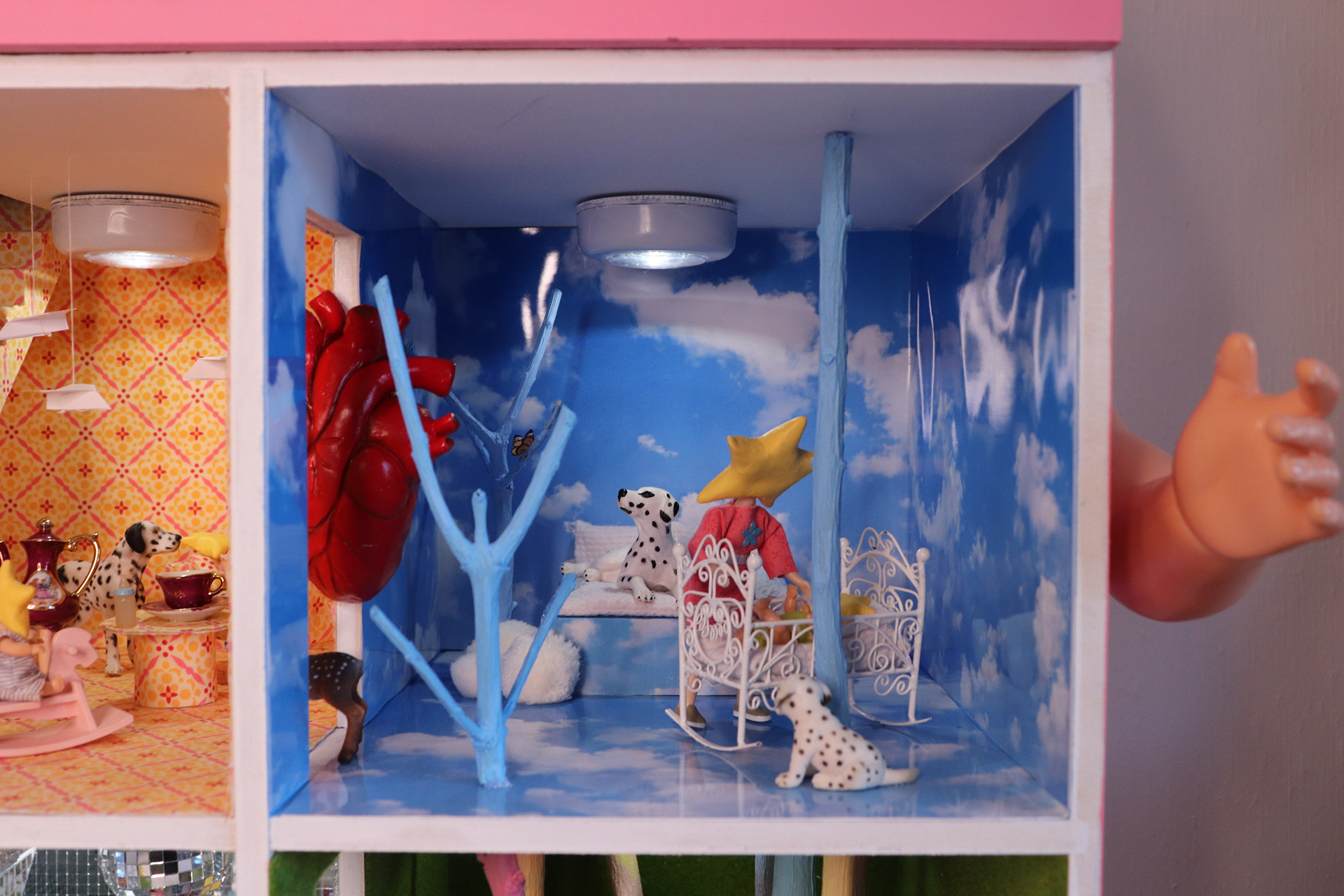Inside I Am Always Home er en mixed media skulptur, med utgangspunkt i et av dukkehusene fra egen barndom. Dukkehuset er utforsket som vesen, og rommene som ulike deler av en selv, med absurde elementer inspirert av eventyr, barne-tv og drømmer. Stjerne-familien som bor i huset viser en travel, leken og kjærlig atmosfære – inspirert av egen familierelasjon i oppveksten. En kan dra gjenskap til referansene fra ulike karakterer, som hesten til Pippi, Bambi, en hel haug dalmatinere og en vandrende tekanne slik som i skjønnheten og udyret. Huset viser en varm og innbydende atmosfære, her er det plass til alle og en hver, og du er velkommen med på moroa.