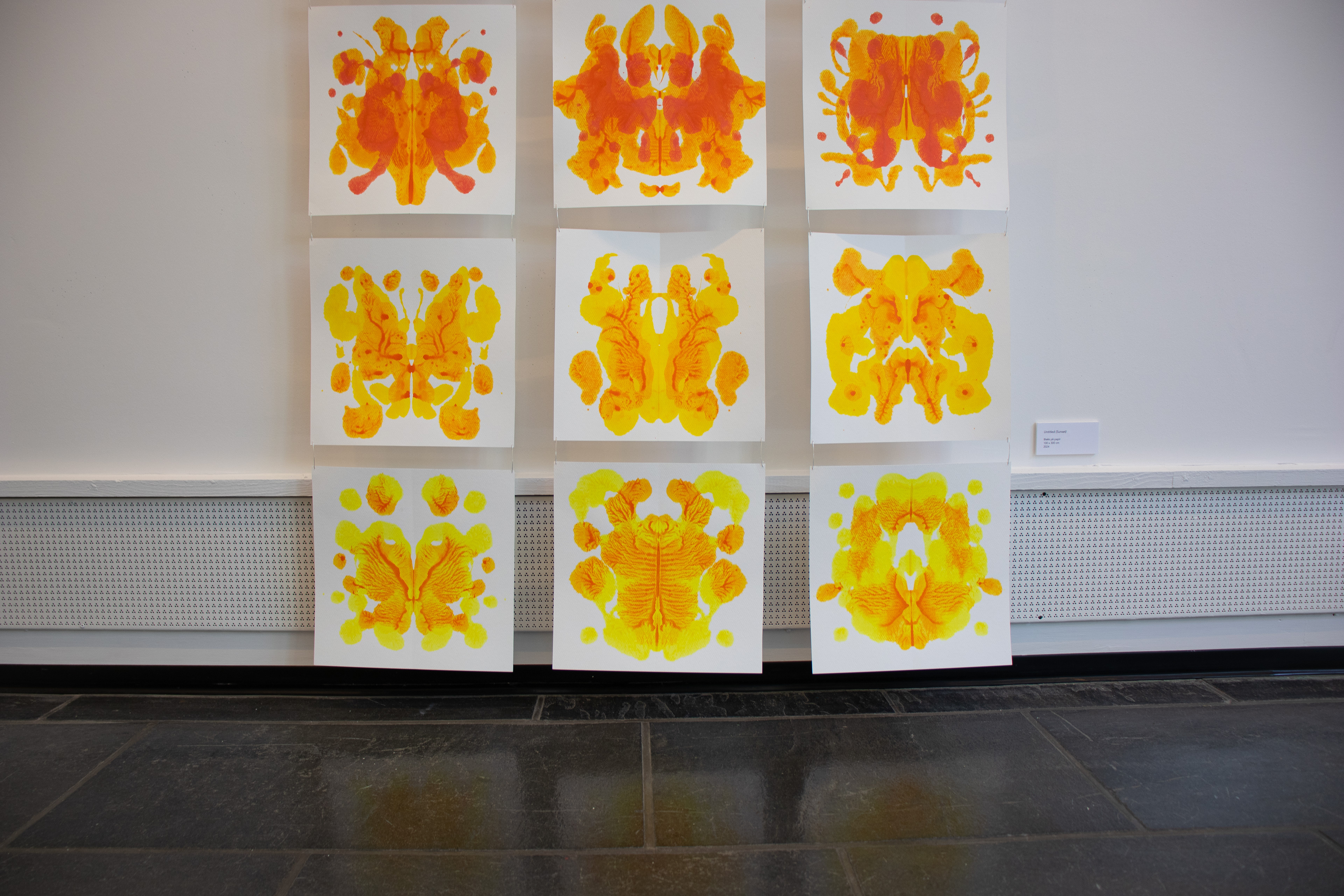 2024. Blekk på papir og ståltråd. 100 x 300 cm.